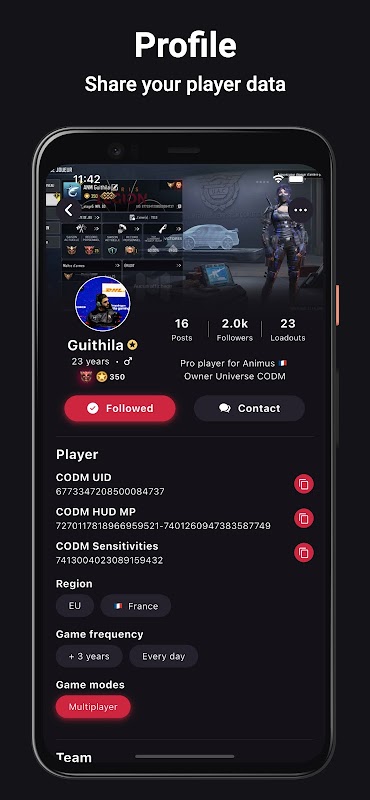 - สร้างโปรไฟล์ที่สมบูรณ์เพื่อแสดงสถิติ ประสิทธิภาพ และการตั้งค่าของคุณ ปรับแต่งให้โดดเด่นและดึงดูดความสนใจของผู้เล่นคนอื่น