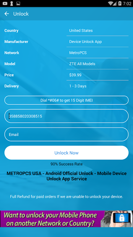Unlocking for all ZTE models on AT&T network. Unlocks all models, even the latest ones if SIM is listed as clean. For other networks, the ZTE service will unlock your mobile device at very low price. Receive code via an in-app notification. You will get notified in your app as soon as your code is available. Easy to use and very functional app and low price to use.