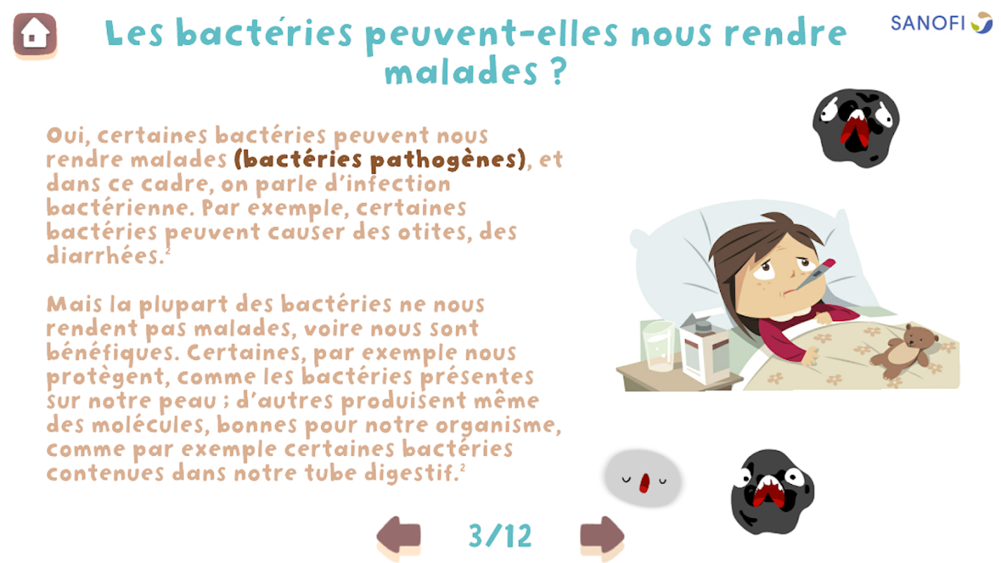 เตรียมพร้อมที่จะปกป้อง Infection Fight Simulator (IFS) จากการโจมตีของจุลินทรีย์และกลายเป็นผู้เชี่ยวชาญของห้องปฏิบัติการด้วย Sonia คู่หูของคุณที่จะแนะนำคุณและช่วยให้คุณเชี่ยวชาญเทคนิคทั้งหมด! มันคือการแข่งขันกับเวลาที่รอคุณอยู่ด้วย Bact'Attack! เป้าหมายของเกมคือการป้องกันการติดเชื้อ เพื่อช่วยคุณในภารกิจนี้ คุณจะมีหลายวิธีในการปกป้อง IFS และชนะภารกิจต่าง ๆ ที่จะได้รับมอบหมายให้คุณ