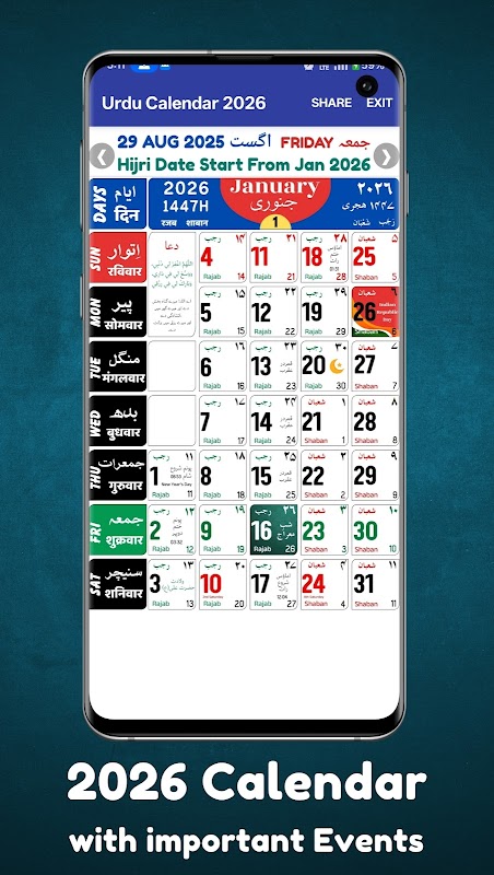 🕌 اردو اسلامی ہجری کیلنڈر 2026