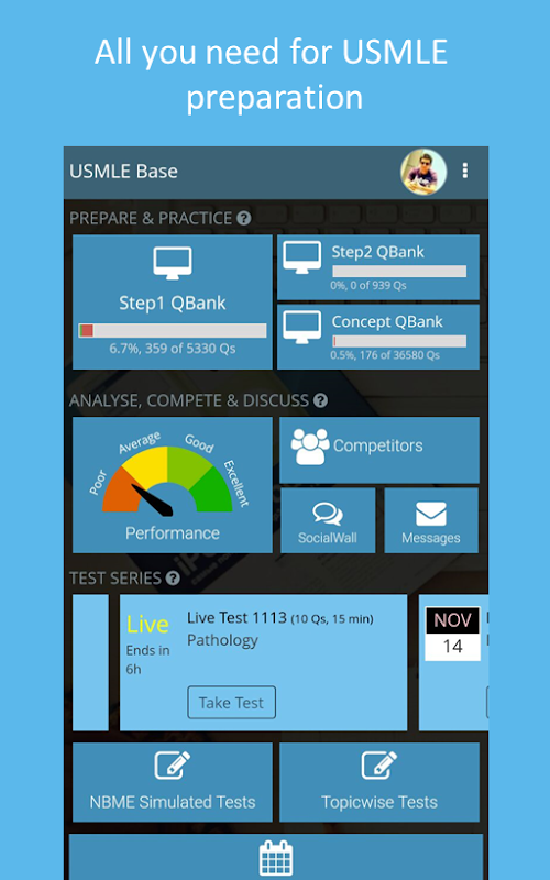 USMLEBase.com assists doctors for practicing USMLE Medical Entrance Exam. It provides Step1 QBank, Step 2 QBank & Concept QBank. It also offers Live Tests, Topic wise Tests, and Grand Tests. Social Wall, Performance Tracker and Study Plans are few add-ons of this USMLE Preparation app.