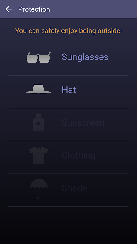 นี่คือแอปพลิเคชันง่ายๆ ที่แสดงค่าปัจจุบันของดัชนีรังสีอัลตราไวโอเลต เครื่องมือวัดที่แม่นยำ (แนวตั้ง, Android 6 หรือใหม่กว่า) ใช้งานได้บนแท็บเล็ต โทรศัพท์ และสมาร์ทโฟนที่เชื่อมต่อกับอินเทอร์เน็ต ในตอนแรกจะได้รับพิกัดท้องถิ่น (ละติจูดและลองจิจูด) จาก GPS ของอุปกรณ์ จากนั้นดึงดัชนี UV จากเซิร์ฟเวอร์อินเทอร์เน็ต ค่าของดัชนีนี้กำหนดไว้ตามมาตรฐานสากล และแสดงถึงความแรงของรังสีอัลตราไวโอเลตที่ทำให้เกิดการไหม้แดด ณ ตำแหน่งของคุณ (ความเข้ม ณ เที่ยงสุริยะ) นอกจากนี้คำแนะนำในการป้องกันก็ขึ้นอยู่กับระดับของรังสีประเภทนี้ด้วย
