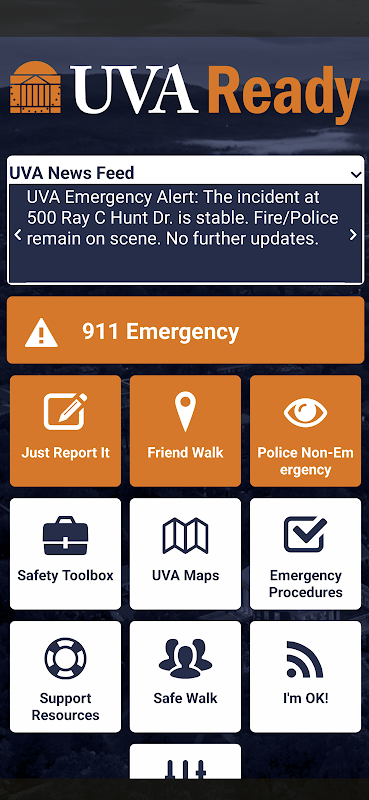 UVA Ready เป็นแอปความปลอดภัยอย่างเป็นทางการของ University of Virginia เป็นแอปเดียวที่ทำงานร่วมกับระบบความปลอดภัยและการรักษาความปลอดภัยของมหาวิทยาลัยเวอร์จิเนีย แอปจะส่งการแจ้งเตือนด้านความปลอดภัยที่สำคัญถึงคุณและให้สิทธิ์เข้าถึงแหล่งข้อมูลด้านความปลอดภัยของมหาวิทยาลัยได้ทันที