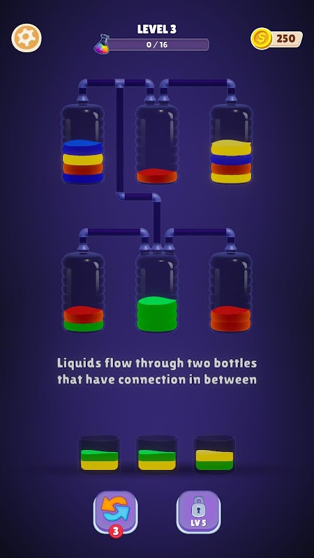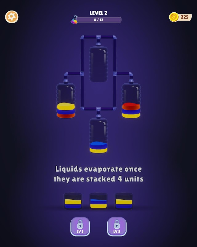 ลาก จับคู่ และจัดเรียงของเหลวที่สดใส ใช้ท่อเพื่อถ่ายโอนและซ้อนสี