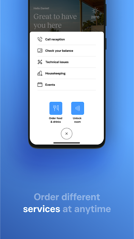 - ร้องขอรูมเซอร์วิสหรือบริการทำความสะอาดได้จากแอพ