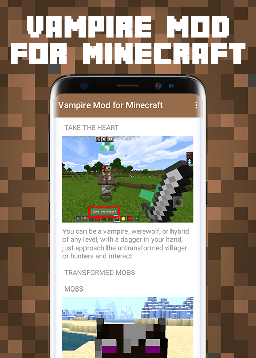 Vampire Mod สำหรับ Minecraft PE เป็นแอปพลิเคชั่นที่ให้คุณติดตั้ง "Vampire Craft Addon" ได้อย่างรวดเร็วและง่ายดายในเกม Minecraft Pocket Edition ของคุณ