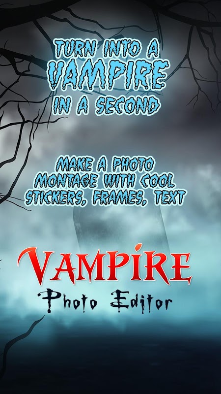 If you are a fan of vampire movies, then our vampire photo editor pro is just the right app for you. Make yourself look like a vampire by using our vampire face photo editor. Try out this vampire fangs app with a huge collection of horror stickers for pictures. Use a vampire photo editing app and take a selfie or upload a photo from your device to make a scary photo montage. Vampire costume photo editor will give your photos a completely new look that will definitely scare your friends or family. Vampire Photo Editor 🧛 Scary Camera Face Changer is just a few clicks away from you. Get it right now for free and edit your pictures whenever you feel bored.