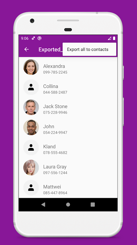 พวกเราหลายคนมีข้อมูลสำรองเก่าจากโทรศัพท์รุ่นก่อนๆ ในรูปแบบไฟล์ vcf ซึ่งตอนนี้ก็ไม่ใช่ปัญหาแล้ว เพียงใช้โปรแกรมอ่าน vcf เพื่อกู้คืน: นำทางไปยังไฟล์ และบนหน้าจอรายการผู้ติดต่อ ให้ส่งออกผู้ติดต่อทั้งหมดไปยังหน่วยความจำโทรศัพท์หรือบัญชี Google