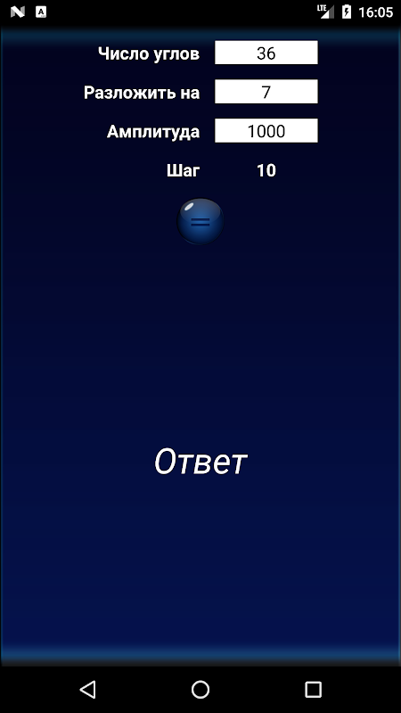 17. вывод результата расчетов на график в полярных координатах;