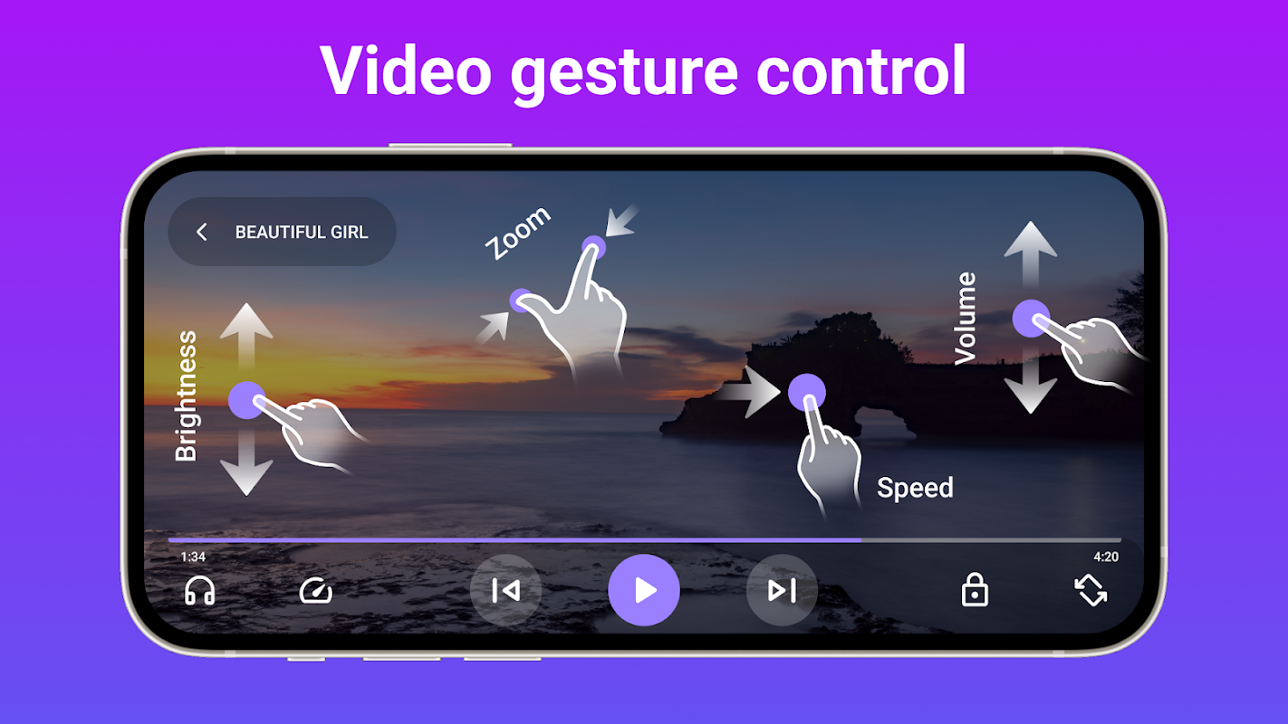 - Gesture Controls – Swipe to adjust volume, brightness, or playback position.