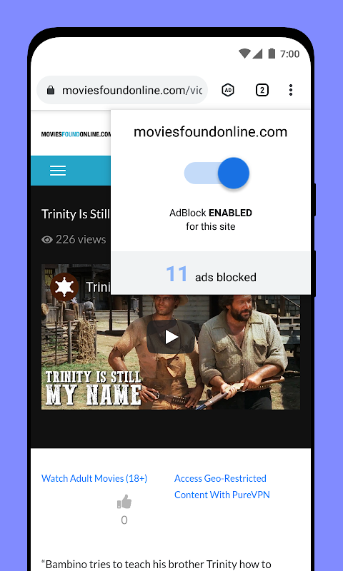 → Advanced Adblocker & Popup Blocker: Vider Adblock Browser มาพร้อมกับตัวบล็อกโฆษณาที่บล็อกป๊อปอัปที่น่ารำคาญส่วนใหญ่ที่คุณเห็นในเว็บ