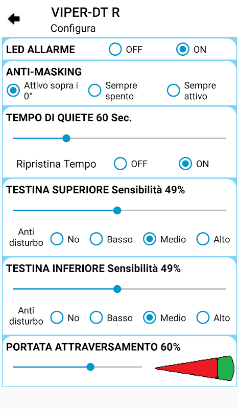 แอพช่วยให้คุณตั้งค่าพารามิเตอร์การทำงานทั้งหมดของเซ็นเซอร์และตรวจสอบแบบเรียลไทม์บนกราฟระดับของสัญญาณที่ได้รับจากแต่ละหัว