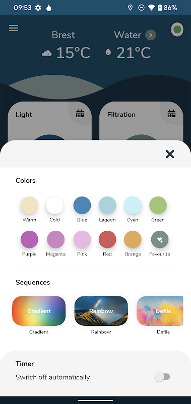 แอปพลิเคชั่นนี้ให้คุณควบคุมอุปกรณ์ที่เข้ากันได้ทั้งหมดในจักรวาล Vigipool: การกรอง การฆ่าเชื้อในน้ำ การควบคุมค่า pH อัตโนมัติ คำสั่ง LED การควบคุมความร้อน ฯลฯ การเพิ่มอุปกรณ์ใหม่ในห้องเทคนิคทำได้ง่าย เมื่อติดตั้งอุปกรณ์ในห้องแล้ว ให้เชื่อมต่อกับบัญชี Vigipool ในแอปพลิเคชันและเพิ่มลงในพูลของคุณ ง่ายและรวดเร็ว!