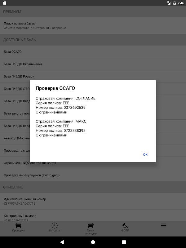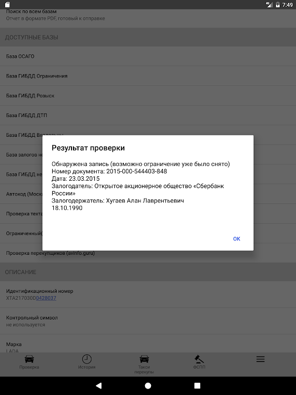 แอปแรกและคนเดียวที่สนับสนุนฐานข้อมูลทั้งหมดสำหรับการตรวจสอบ อุบัติเหตุฐานตำรวจจราจร, เงินฝากธนาคารและปลัดอำเภอ, เพื่อให้, ข้อมูลและรายงานชิง CarFax การโจรกรรมตรวจสอบบนพื้นฐานของการเป็นเจ้าของรถแท็กซี่ FSSP รีจิสทรี