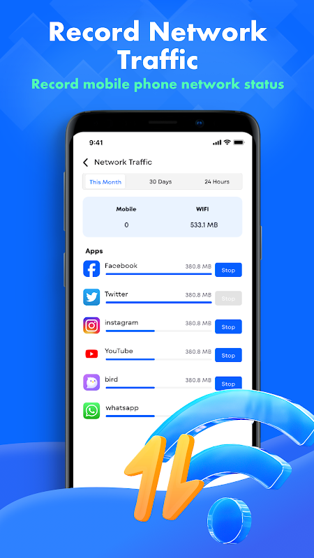📊 การใช้งานเครือข่าย: ตรวจสอบและวิเคราะห์การใช้งานข้อมูลของคุณเพื่อจัดการปริมาณการใช้งานและหลีกเลี่ยงการสิ้นเปลืองข้อมูลเครือข่ายโดยไม่จำเป็น