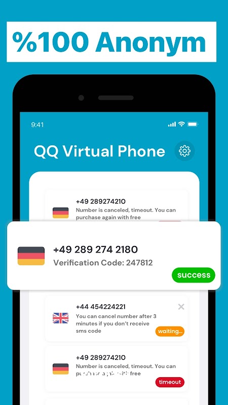 • แอพ Virtual Numbers ให้บริการหมายเลขจากกว่า 100 ประเทศ แต่ถ้าคุณไม่มีหมายเลขโทรศัพท์ในประเทศของคุณ คุณยังสามารถรับหมายเลขสหรัฐอเมริกาหรือหมายเลขอื่นๆ และเปิดใช้งานบัญชี QQ ได้!