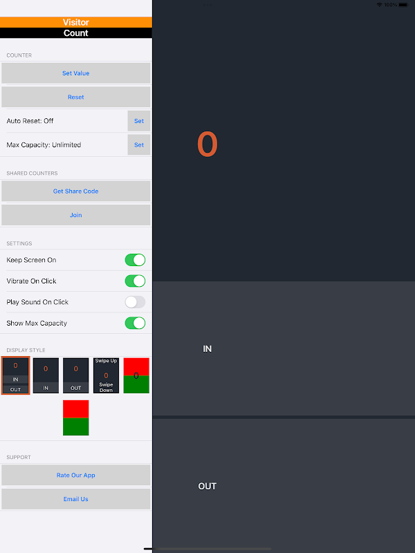 จำนวนผู้เข้าชมเป็นตัวนับง่ายๆ เพียงคลิก "เข้า" เมื่อลูกค้าเข้ามา และ "ออก" เมื่อลูกค้าออก แอพจะแสดงผลรวมเพื่อระบุจำนวนผู้เยี่ยมชมที่คุณมีในแต่ละครั้ง