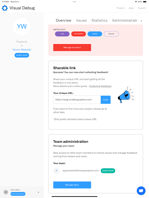 - การจัดการคำติชมแบบรวมศูนย์: ดูและจัดการคำติชมทั้งหมดได้อย่างง่ายดายในที่เดียว ด้วยแอปมือถือ Visual Debug คุณสามารถติดตาม จัดลำดับความสำคัญ และมอบหมายคำติชมให้กับสมาชิกในทีมโดยไม่ต้องเชื่อมโยงกับคอมพิวเตอร์ของคุณ