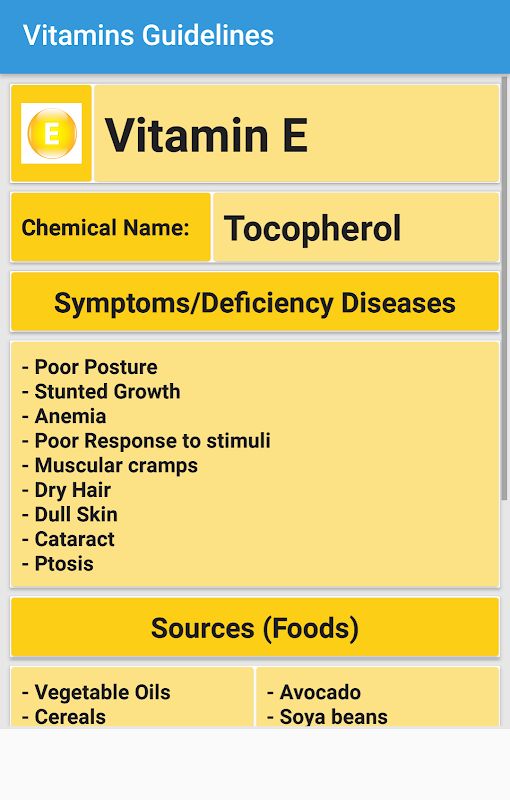 แอปพลิเคหลักเกณฑ์ของวิตามินที่มีข้อมูลของวิตามินและแหล่งที่มาสำหรับแต่ละวิตามิน