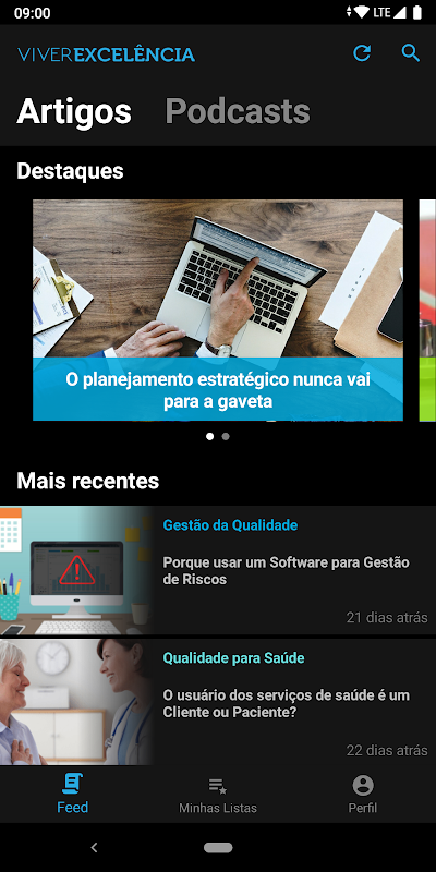 ด้วยแอปพลิเคชัน Viver Excelênciaคุณสามารถดาวน์โหลดเนื้อหาเพื่อให้คุณสามารถ สร้างไลบรารีของคุณเอง กับบทความที่น่าสนใจและมีประโยชน์มากที่สุดและ podc asts สำหรับบริบทของคุณ