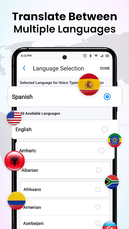 การเลือกภาษา: เลือกภาษาสำหรับการพิมพ์ด้วยเสียงและการแปล