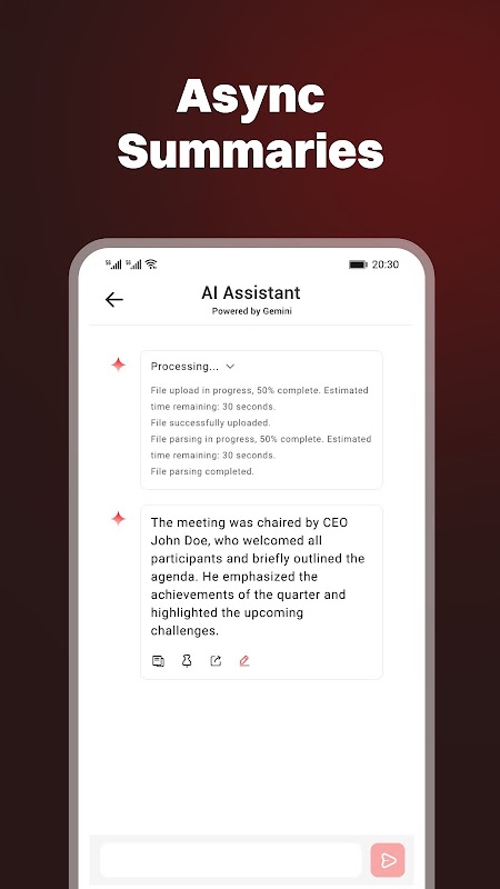 Recorder AI ใช้เทคโนโลยีการรู้จำเสียงเพื่อแปลงเสียงที่บันทึกเป็นข้อความ และยังสามารถแยกแยะเสียงของผู้พูดแต่ละคนได้ การผสานรวม API ของ ChatGPT ซึ่งเป็นเทคโนโลยี AI ทำให้ Recorder AI สามารถสรุปและปรับแต่งประเด็นสำคัญของเนื้อหาข้อความได้อย่างรวดเร็ว วิธีนี้ช่วยให้คุณตรวจสอบและวิเคราะห์ไฟล์เสียงได้อย่างมีประสิทธิภาพยิ่งขึ้น คุณสมบัตินี้มีประโยชน์อย่างยิ่งสำหรับธุรกิจ นักวิจัย หรือใครก็ตามที่ต้องการถอดเสียงและวิเคราะห์เนื้อหาเสียงอย่างรวดเร็วและแม่นยำ