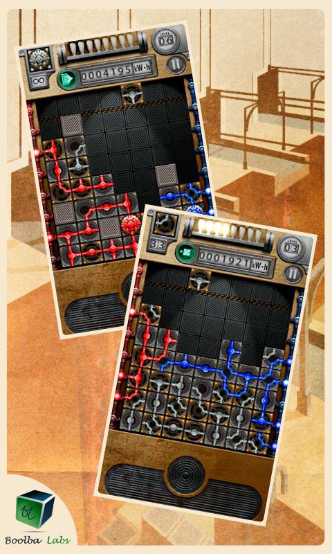 Build the high voltage circuit and watch it disappear in colourful sparks of tameless electricity. Race against the ticking timer or relax in unlimited mode. Compete with other players through OpenFeint scoring system.