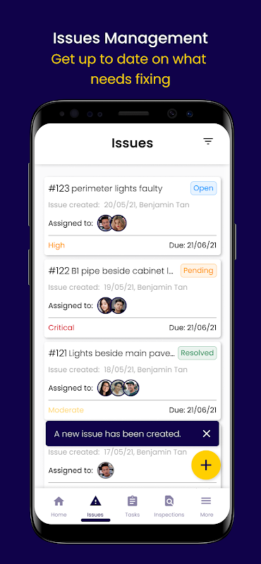 Voox empowers teams to collaborate and make proactive, data-led decisions for your construction projects and facility management portfolios. Create Issues when you discover them, assign and track their rectification progress across your teams and sites. Conduct Inspections with customized checklists to make sure standard procedures are followed.