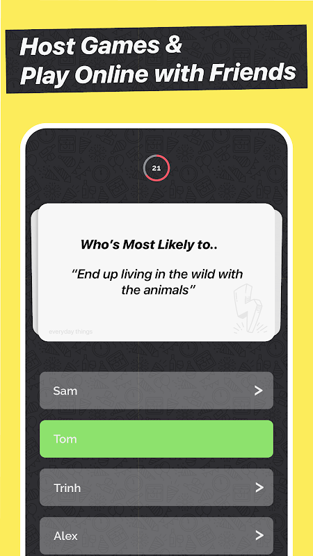 Most Likely สามารถเล่นเป็นเกมปาร์ตี้กลุ่มเพื่อความสนุกสนานกับเพื่อน ๆ จากที่บ้านของคุณเองหรือออนไลน์ในห้อง Discord ของคุณ รับประกันว่าจะเริ่มและจบด้วยเสียงหัวเราะมากมาย!