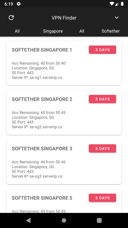 ในแอปพลิเคชั่นนี้มี ssh, vpn และพร็อกซีเซิร์ฟเวอร์ทั่วโลกที่คุณสามารถเลือกตำแหน่งที่ตั้งการหมดอายุของบัญชีและผู้ให้บริการบัญชี