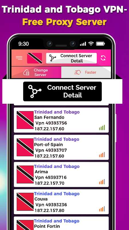 browsing with VPN Trinidad and Tobago-Free Proxy Server is the fastest network of any Trinidad and Tobago country. Find all latest information like news, videos and many more sites related to Trinidad and Tobago country. An application can particularly design considering the Intuitive User Interface while using it. your device and network are safe to use while you using or connected with any servers.