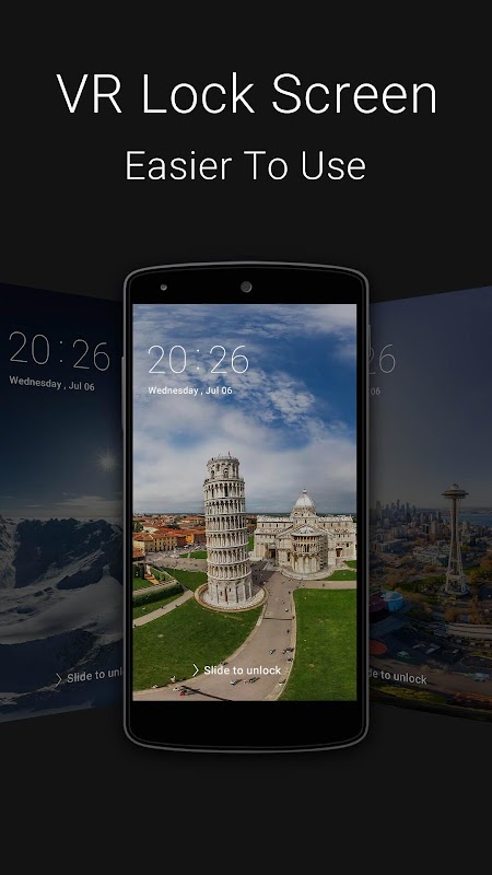 VR Lock Screen, a featuring highly-recommended security, stability and compatibility, with variety of high-quality photos panoramic lock screen!