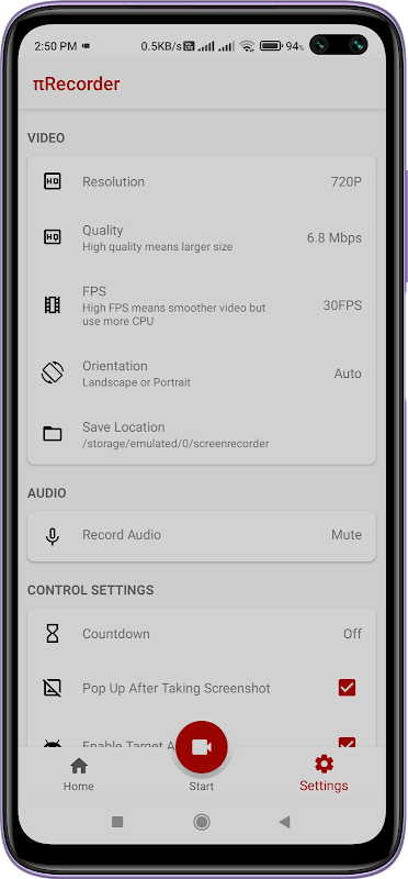 * Recording video with custom settings: (240p to 1080p, 25FPS to 60FPS, 1Mbps to 48Mbps)