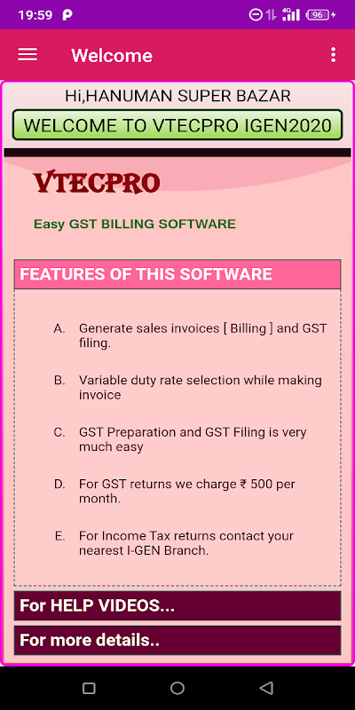 VTECPRO IGEN2020 is very much helpful in generating sale invoices and purchase invoices. VTECPRO IGEN2020 is simple & secure App. to Create & Share Invoices. Inventory Management is very much easy and also helpful GST Preparation and GST Filing.