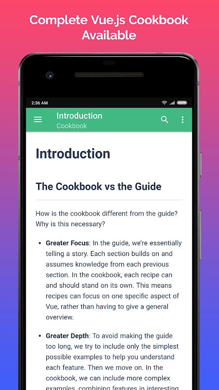Vue.js 2 ออฟไลน์เอกสารคู่มือ API, คู่มือสไตล์ตัวอย่างและตำรา