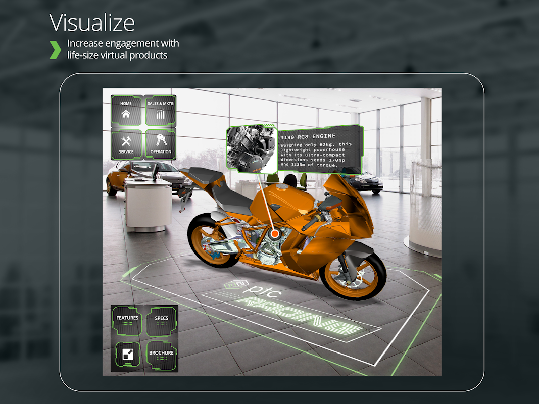 Vuforia View ช่วยให้ผู้ใช้สามารถเข้าถึงและแบ่งปันประสบการณ์ Augmented Reality ซึ่งเต็มไปด้วยเนื้อหา 3 มิติและข้อมูล IoT บนอุปกรณ์พกพาและแว่นตาดิจิทัลทั่วทั้งองค์กร Vuforia View ทำให้ผลิตภัณฑ์มีชีวิตและเพิ่มขีดความสามารถให้กับพนักงานของคุณด้วยการโต้ตอบกับผู้ใช้ที่สมจริงซึ่งสร้างขึ้นใน Vuforia Studio ซึ่งเป็นสภาพแวดล้อมการเขียนที่รวดเร็วสำหรับประสบการณ์ AR ที่ปรับขนาดได้