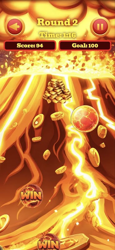 In this fast-paced game, your objective is to tap only the lava balls as they fall down the volcano. Each round gives you a limited time and a target score you must hit by tapping the correct balls. Avoid tapping anything else — only balls marked with “WIN” add to your score. Points are rewarded for precision. The lava theme keeps the visuals dynamic, while the timer and goal create constant tension. Stay focused and aim quickly to complete each round and climb the score ladder.