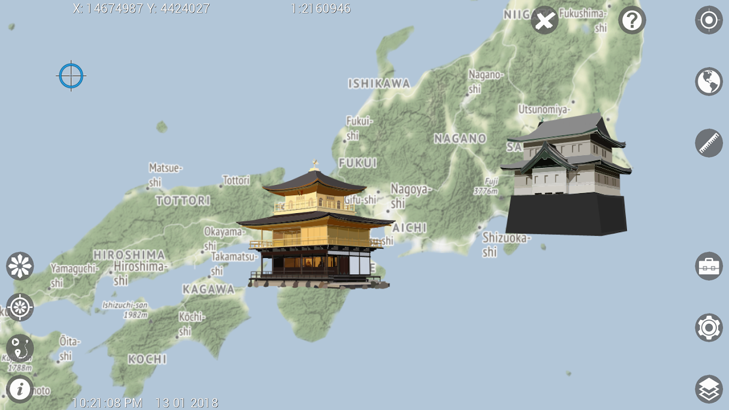 - รองรับรูปร่าง, TIFF, GeoTIFF, JPEG, WMS, WMTS และ TMS