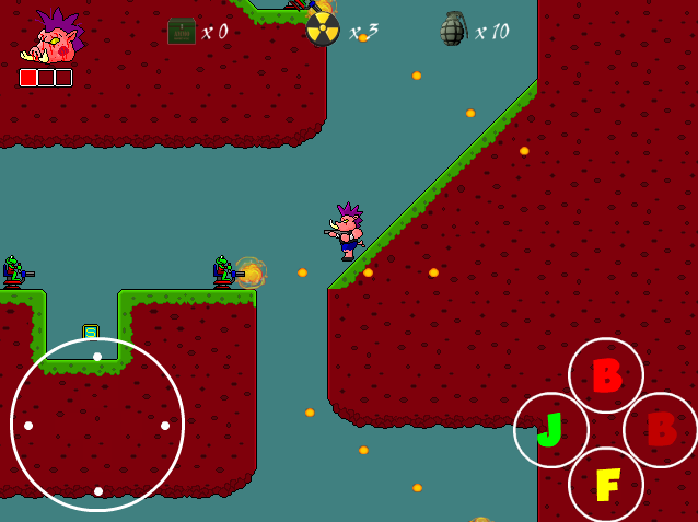 Use the keys to move and tap to jump and shoot. Use several guns and hand grenades too!