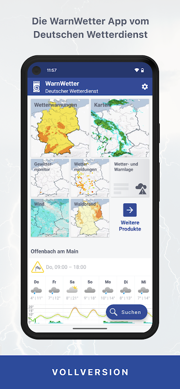 แอป WarnWetter มีฟังก์ชันต่อไปนี้ (เวอร์ชันฟรี):