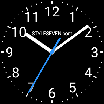 หน้าปัดนาฬิกาแบบอะนาล็อกสำหรับ Wear OS โดย Google 1.x (Android Wear) ขึ้นอยู่กับวอลล์เปเปอร์สด Analog Clock Live Wallpaper-7 นาฬิกาจะแสดงวันที่ปัจจุบันวันของสัปดาห์เดือนและการชาร์จแบตเตอรี่ รองรับรูปแบบเวลา 12/24 เดือนและวันในสัปดาห์แสดงตามภาษาของอุปกรณ์