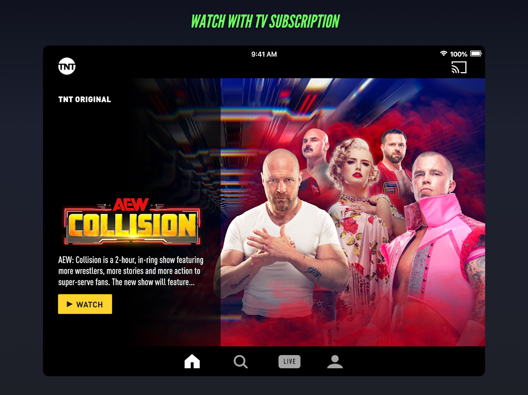 แอป TNT ทำให้การรับชมกีฬาสด ภาพยนตร์ และตอนเต็มเป็นเรื่องง่าย! ลงชื่อเข้าใช้กับผู้ให้บริการทีวีของคุณเพื่อรับชมกีฬาสดเช่น NBA บน TNT, NHL บน TNT, US Soccer และ TNT Originals เช่น AEW: Collision และ The Lazarus Project! รับชมได้ทุกที่ทุกเวลาด้วยแอป TNT พร้อมเพลิดเพลินไปกับการแสดงคลาสสิกและภาพยนตร์บล็อกบัสเตอร์บนหน้าจอใดก็ได้