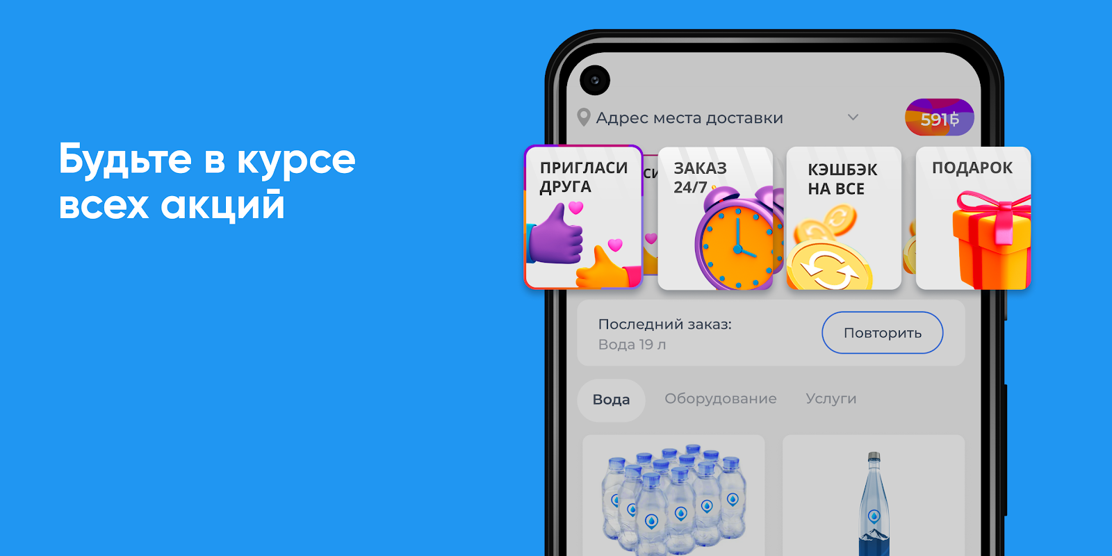ดาวน์โหลดแอป Water Delivery บนสมาร์ทโฟนของคุณและสั่งน้ำได้ทุกวันตลอด 24 ชั่วโมง คุณจะสามารถสั่งซื้อซ้ำได้ด้วยการคลิกเพียงปุ่มเดียว ดูประวัติการซื้อทั้งหมดของคุณและรับทราบโปรโมชั่นทั้งหมดของบริษัท