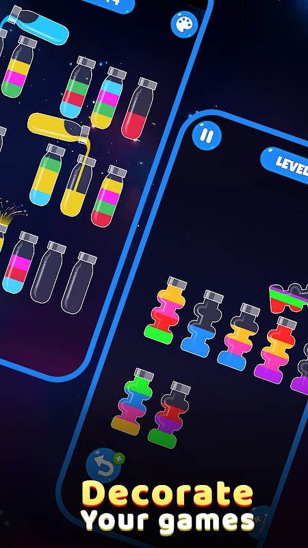 ดำดิ่งสู่โลกแห่งสีสันด้วยเกมเรียงน้ำ ท้าทายสมองของคุณไปพร้อมกับการผ่อนคลายไปกับการผจญภัยปริศนาทางน้ำในเกมเรียงน้ำที่สนุกสนาน เป้าหมายของเกมนั้นง่ายมาก เพียงแค่เรียงน้ำหลากสีลงในขวดจนกระทั่งแต่ละขวดมีสีเดียวในเกมเรียงน้ำ แตะ เท และวางแผนในเกมเรียงสีที่ผ่อนคลายนี้ โดยผสมผสานความบันเทิงเข้ากับการฝึกสมองในเกมเรียงน้ำ