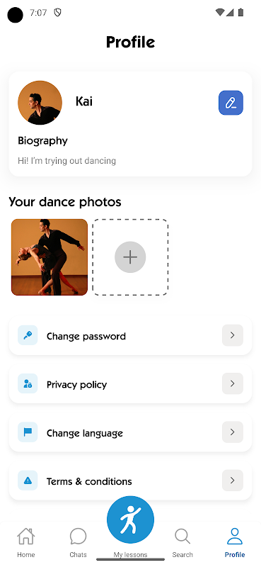- โปรไฟล์อัจฉริยะ: สร้างโปรไฟล์นักเต้นของคุณด้วยสไตล์ เป้าหมาย และประสบการณ์ เพื่อให้ตรงกับความต้องการของคุณมากขึ้น
