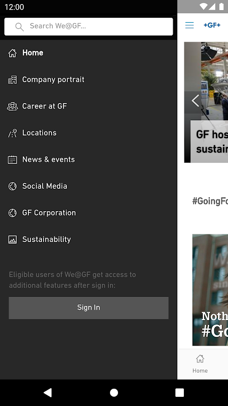 แอปนี้ให้ข้อมูลที่ครอบคลุมเกี่ยวกับบริษัท กิจกรรมทางธุรกิจ วัฒนธรรมองค์กร ภาพรวมสถานที่ตั้ง และการเข้าถึงประกาศรับสมัครงานทั่วโลกและโอกาสในการทำงานที่ GF ข้อเสนอนี้เสริมด้วยเรื่องราวความสำเร็จ วิดีโอ ประกาศ และข้อมูลเกี่ยวกับช่องทางการสื่อสารและสื่ออื่นๆ ของ GF เนื้อหามุ่งเป้าไปที่ประชาชนทั่วไปตลอดจนลูกค้า ซัพพลายเออร์ พนักงาน และใครก็ตามที่ต้องการรับข้อมูลและข่าวสารอย่างรวดเร็วและง่ายดายผ่านสมาร์ทโฟน