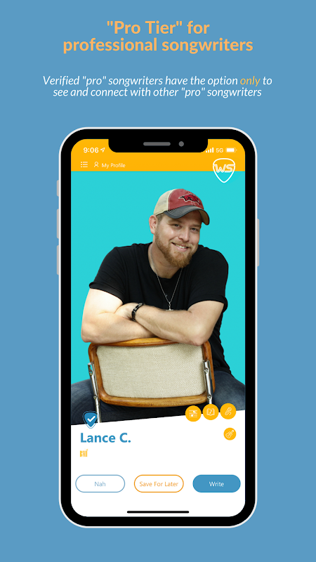 นักแต่งเพลงคือหัวใจของวงการเพลง ภารกิจของเราคือการช่วยให้นักแต่งเพลงใช้เวลามากขึ้นในการทำสิ่งที่พวกเขาชอบทำ เขียนเพลง! ตั้งแต่ปี 2010 มีเพียง 4% ของเพลง 50 อันดับแรกที่แต่งโดยนักแต่งเพลงเดี่ยว ซึ่งหมายความว่าการเขียนร่วมมีความสำคัญต่อความสำเร็จ นี่คือเหตุผลที่เราสร้าง เราควรเขียนบางครั้ง (WSWS) WSWS ช่วยให้นักแต่งเพลงตั้งค่า PERFECT ร่วมเขียนด้วย "Swipe Write" ง่ายๆ นิตยสารโรลลิงสโตนเรียกมันว่า "เชื้อจุดไฟสำหรับนักแต่งเพลง" WSWS ใช้ตำแหน่งทางภูมิศาสตร์สำหรับนักแต่งเพลงเพื่อค้นหานักแต่งเพลงคนอื่นๆ แต่ละโปรไฟล์มีประวัติ ลิงก์ไปยังเพลงและโซเชียล ทักษะการแต่งเพลง เครื่องดนตรีที่เล่น และ PRO ที่พวกเขาเป็นสมาชิก