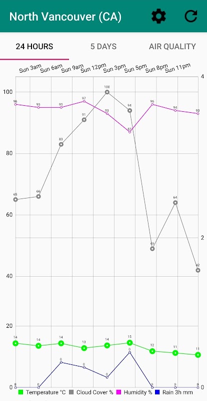 (low and high are shown for the given range, i.e. 24h or 5 days)