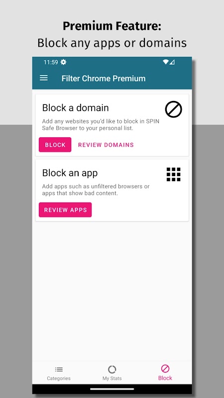 ท่องอินเทอร์เน็ตโดยไม่ต้องกังวลว่าจะตกไปบนเนื้อหาที่ไม่เหมาะสมโดยไม่ตั้งใจ ตัวกรองเว็บสำหรับ Chrome & SPIN บล็อกเว็บเบราว์เซอร์ที่ไม่ได้กรองทั้งหมดบนอุปกรณ์ Android ของคุณ เฉพาะ SPIN Safe Browser และเบราว์เซอร์ Chrome ของ Google เท่านั้นที่สามารถใช้อินเทอร์เน็ตได้อย่างปลอดภัย
