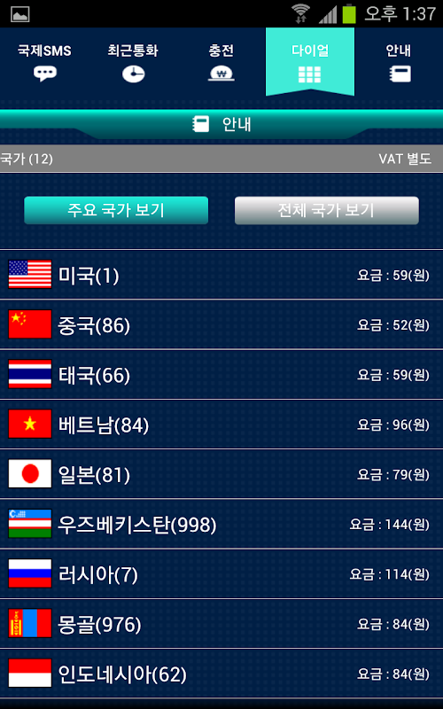 Indonesia : 87 won (dapat 166 menit telepon setiap isi ulang 10.000 won)